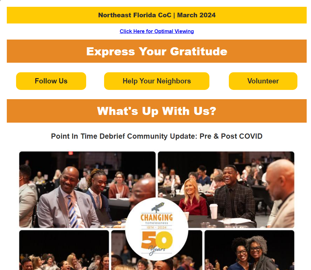 Email marketing campaigns were created in Constant Contact, Canva, and Adobe Express.